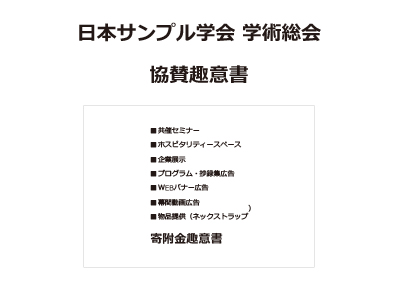 2026年1月23日(金)・24(土)日本サンプル学会会館で開催される、第00回日本サンプル学会 学術総会への協賛申込となります。詳しくは下記[協賛についてのご案内]PDF資料をご覧ください。